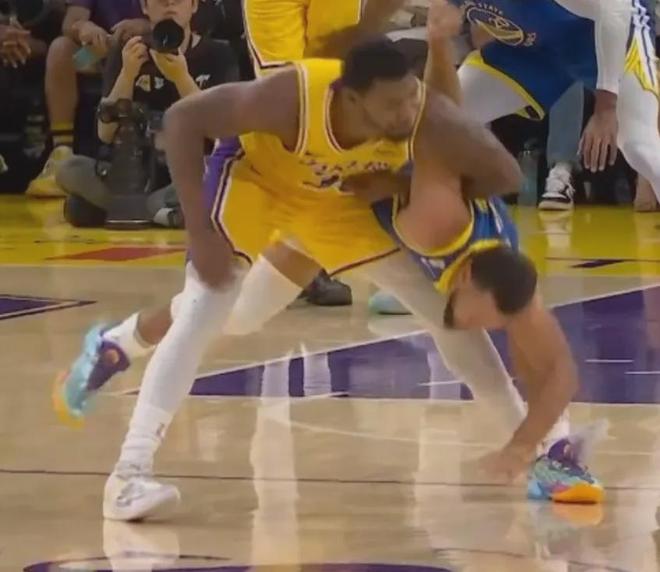 在硬邦邦的JB身边,库里不断跟斯玛特缠斗,首节消耗了不少精力,气得库里在次节推了斯玛特一把,被吹了1次进攻犯规。