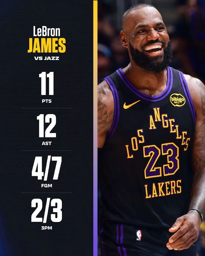 刚刚!詹姆斯23赛季首秀11+12,湖人队轻松拿捏爵士