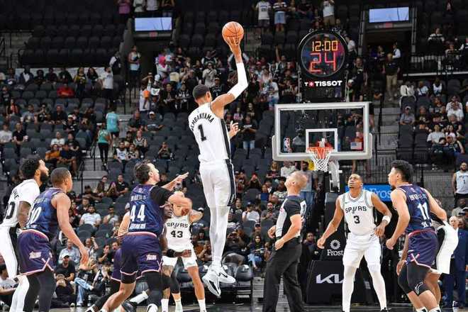 文班亚马伤愈复出首秀:3中3轰9分10板7助太狠 多次血帽点燃球馆